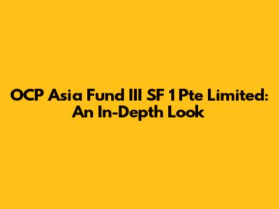OCP Asia Fund III SF 1 Pte Limited: Everything You Need To Know