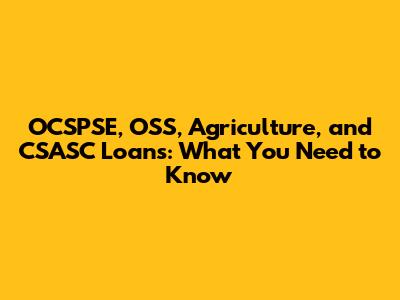 OCSPSE, OSS, Agriculture, And CSASC Loans: What You Need To Know