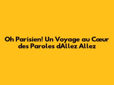 Oh Parisien! Un Voyage Au Cœur Des Paroles D'Allez Allez