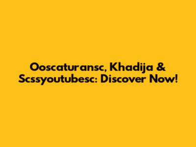 Ooscaturansc, Khadija & Scssyoutubesc: Discover Now!