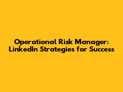 Operational Risk Manager: LinkedIn Strategies For Success