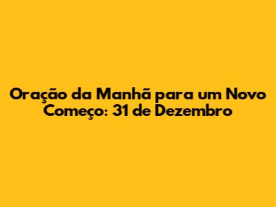 Oração Da Manhã Para Um Novo Começo: 31 De Dezembro