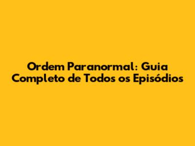 Ordem Paranormal: Guia Completo De Todos Os Episódios