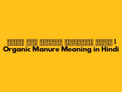 खाद का मतलब हिंदी में | Organic Manure Meaning In Hindi