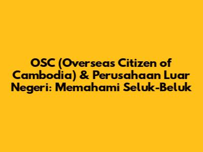 OSC (Overseas Citizen of Cambodia), atau Warga Negara Kamboja Perantauan, adalah istilah yang semakin relevan dalam konteks investasi dan bisnis di Kamboja. Nah, guys, kalau kalian tertarik untuk memahami lebih dalam mengenai OSC dan bagaimana hal ini berkaitan dengan perusahaan luar negeri, artikel ini adalah tempat yang tepat! Kita akan kupas tuntas, mulai dari definisi, hak dan kewajiban, hingga bagaimana OSC berinteraksi dengan dunia bisnis internasional di Kamboja. Jadi, siap-siap untuk menyelami dunia yang menarik ini!