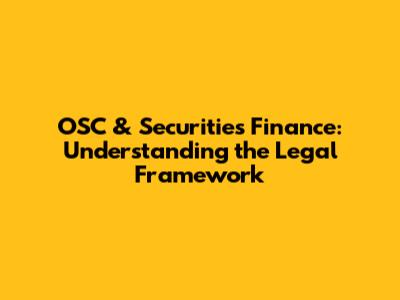 OSC & Securities Finance: Understanding The Legal Framework