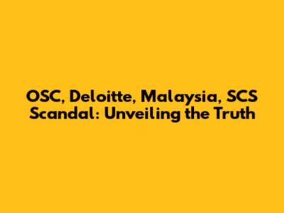 OSC, Deloitte, Malaysia, SCS Scandal: Unveiling The Truth