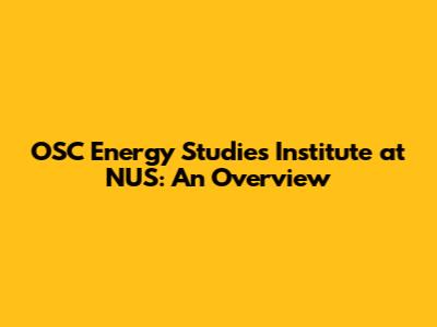OSC Energy Studies Institute At NUS: An Overview