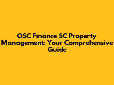 OSC Finance SC Property Management: Your Guide
