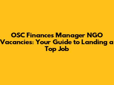 OSC Finances Manager NGO Jobs: Find Vacancies Now