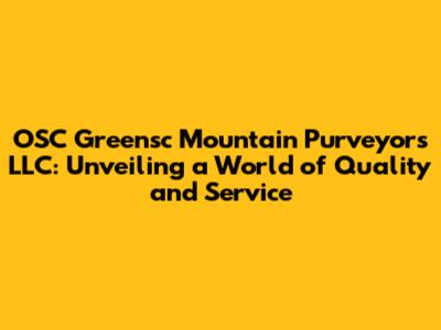 OSC Greensc Mountain Purveyors LLC: Your Go-To Guide