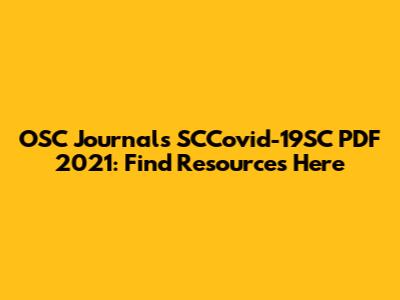 OSC Journals SCCovid-19SC PDF 2021: Find Resources Here