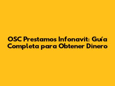 OSC Prestamos Infonavit: Guía Completa Para Obtener Dinero