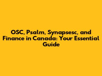 OSC, Psalm, Synapsesc, And Finance In Canada: Your Essential Guide