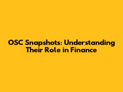 OSC Snapshots: Understanding Their Role In Finance