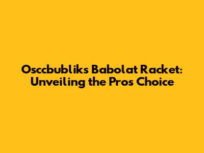 Osccbublik's Babolat Racket: Unveiling The Pro's Choice
