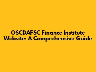 OSCDAFSC Finance Institute Website: A Comprehensive Guide