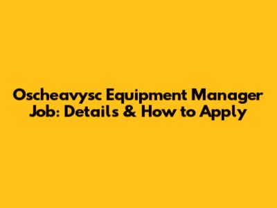 Oscheavysc Equipment Manager Job: Details & How To Apply
