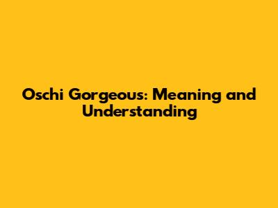 Oschi Gorgeous: Meaning And Understanding