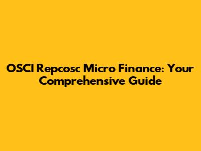 OSCI Repcosc Micro Finance: Your Guide