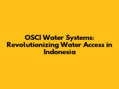 OSCI Water Systems: Revolutionizing Water Access In Indonesia