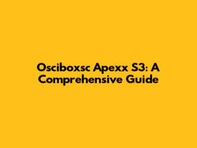 Osciboxsc Apexx S3: A Comprehensive Guide