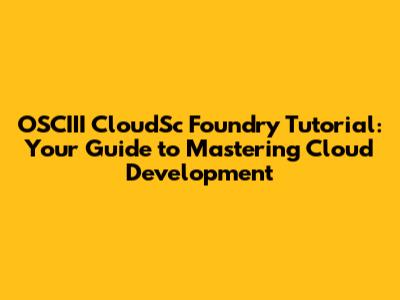 Hey everyone! 👋 Ever wanted to dive into the world of cloud development? Well, you're in the right place! Today, we're going to embark on a journey into OSCIII CloudSc Foundry. Don't worry if you're new to this – we'll break it down step by step, making it easy to understand and follow along. This tutorial is designed for anyone who wants to learn the ropes of cloud development, regardless of their experience level. So, grab your favorite drink, sit back, and let's get started!