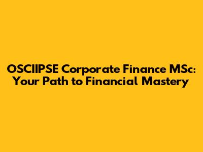 OSCIIPSE Corporate Finance MSc: Your Path To Financial Mastery