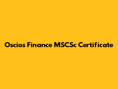 Specifically, the Oscios Finance MSCSc certificate might offer: