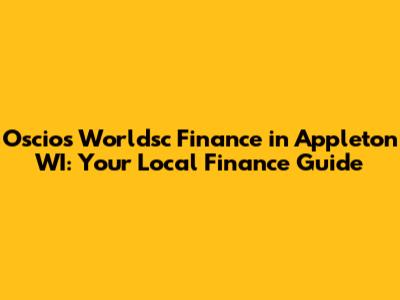 Oscios Worldsc Finance In Appleton WI: A Local Guide