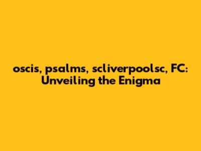 • Scenario 2: A Creative Project. Perhaps this is the title of a creative project that blends religious themes with football culture in Liverpool. "oscis" could be the project's title, "psalms" represents the religious element, "scliverpoolsc" highlights the Liverpool setting, and "FC" acknowledges the football influence. This could be a song, a play, a book, or even a piece of artwork.