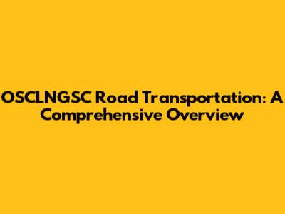 OSCLNGSC Road Transportation: A Comprehensive Overview