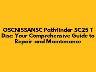 Hey guys! Ever found yourself staring at your OSCNISSANSC Pathfinder SC25 T Disc and wondering what's going on under the hood? Or maybe you're just looking for ways to keep your ride running smoothly for years to come? Well, you're in the right place! This guide is all about diving deep into the OSCNISSANSC Pathfinder SC25 T Disc, offering everything from basic maintenance tips to more in-depth repair advice. We'll cover everything you need to know, making sure you can keep your vehicle in tip-top shape. So, buckle up, and let's get started!