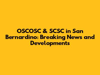 OSCOSC & SCSC In San Bernardino: Latest News & Updates