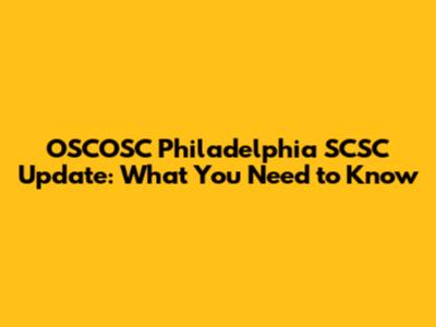 OSCOSC Philadelphia SCSC Update: What You Need To Know