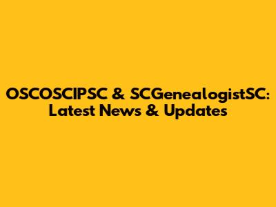 OSCOSCIPSC & SCGenealogistSC: Latest News & Updates