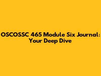 OSCOSSC 465 Module Six Journal: Your Deep Dive