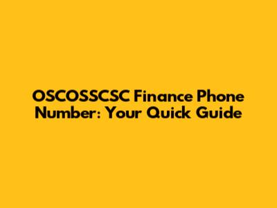 OSCOSSCSC Finance Phone Number: Your Quick Guide