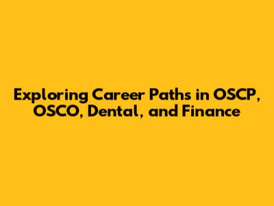 OSCP, OSCO, Dental & Finance Career Opportunities