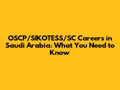 OSCP/SIKOTESS/SC Careers In Saudi Arabia