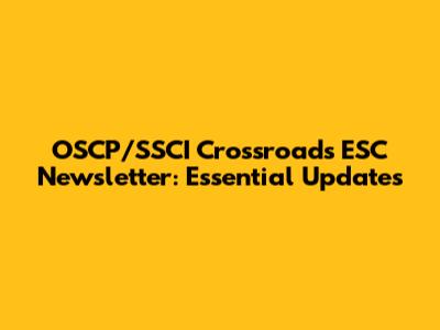 OSCP/SSCI Crossroads ESC Newsletter: Key Updates