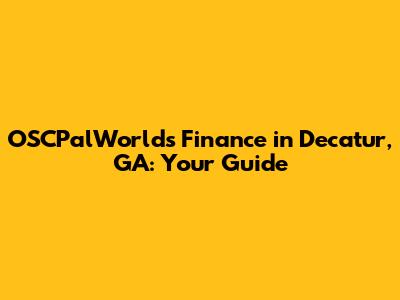 OSCPalWorld's Finance In Decatur, GA: Your Guide