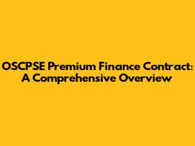Key Components of an OSCPSE Premium Finance Contract