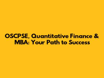 OSCPSE, Quantitative Finance & MBA: Your Path To Success