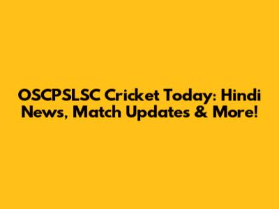 OSCPSLSC Cricket Today: Hindi News, Match Updates & More!
