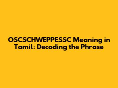 OSCSCHWEPPESSC Meaning In Tamil: Unveiling The Mystery