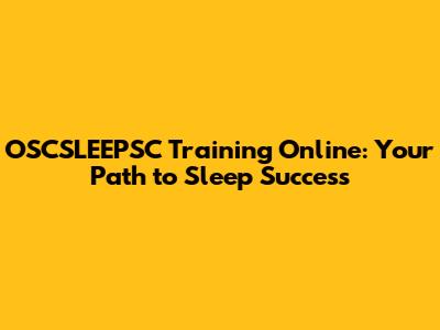 OSCSLEEPSC Training Online: Your Path To Sleep Success