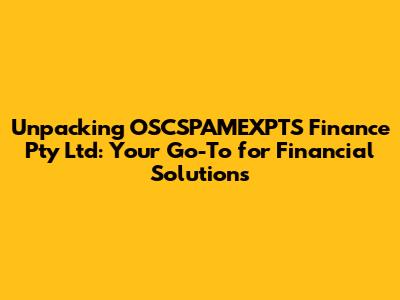 Unpacking OSCSPAMEXPTS Finance Pty Ltd: Your Go-To for Financial Solutions