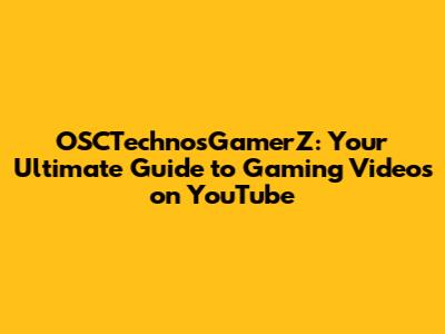 OSCTechnosGamerZ: Your Ultimate Guide To Gaming Videos On YouTube