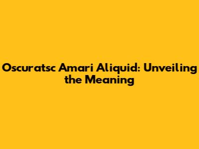Oscuratsc Amari Aliquid: Unveiling The Meaning